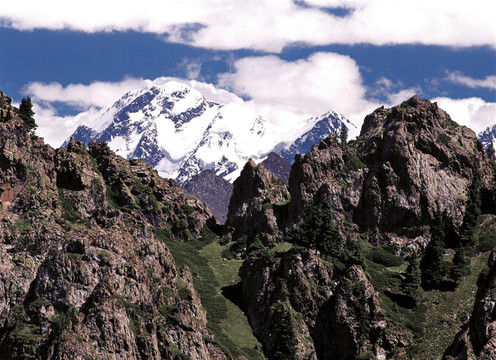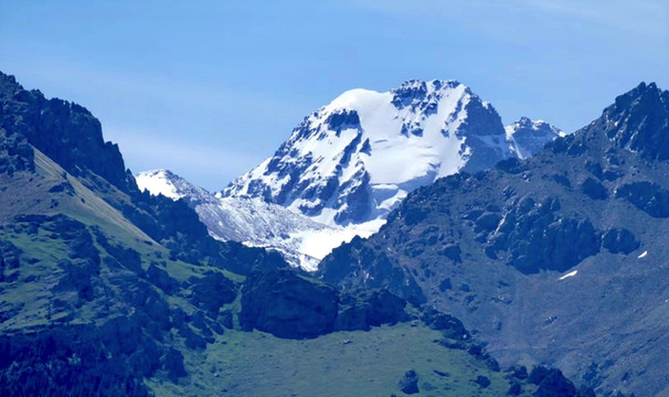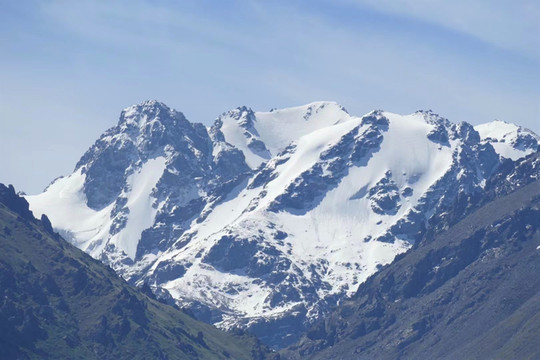 拉近镜头看雪峰。