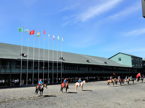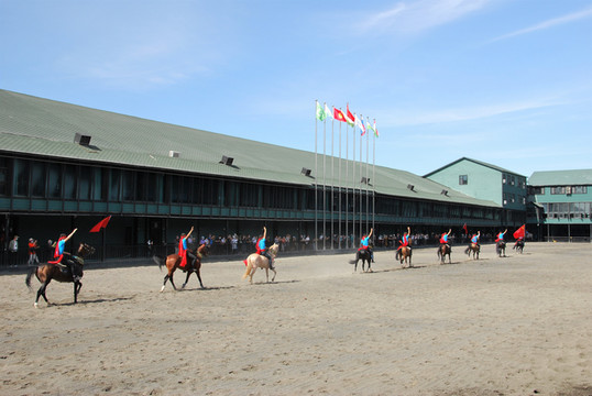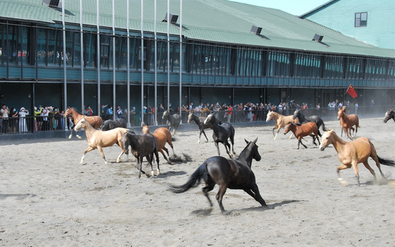 基地从中亚引进百余匹纯种汗血马,均经俄罗斯汗血马认证机构认证;基地占地40000余平方米,建有近6000平方米的室外跑马场1个,近3000平方米的室内马场1个,露天马场2个,以及马匹调教圈、障碍场地、马匹游泳池等专业配备设施。