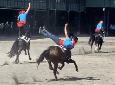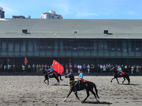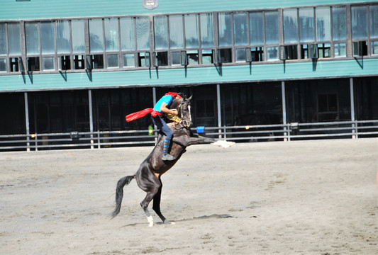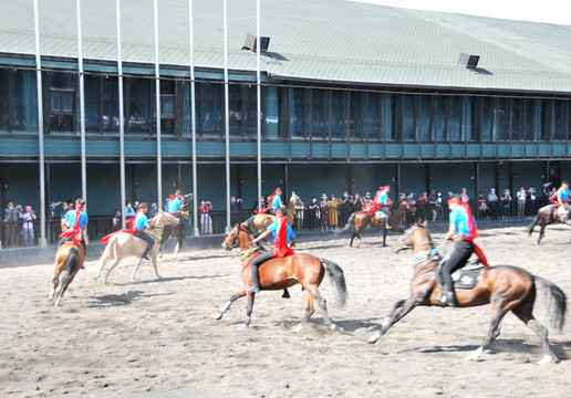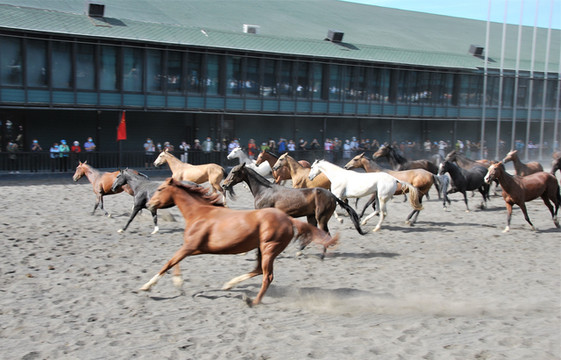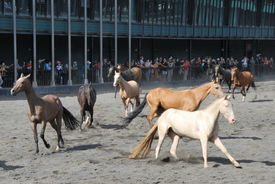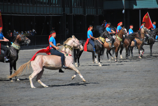 汗血宝马,珍稀、高贵,久闻大名,如雷贯耳。今日有幸一睹其真容,而且是在骑手们驾驭下疾驰飞奔的动态中,而且是群马奔腾,争先恐后,而且是骑手在马上表演各种动作的马术,真是精彩之极,快活至极。