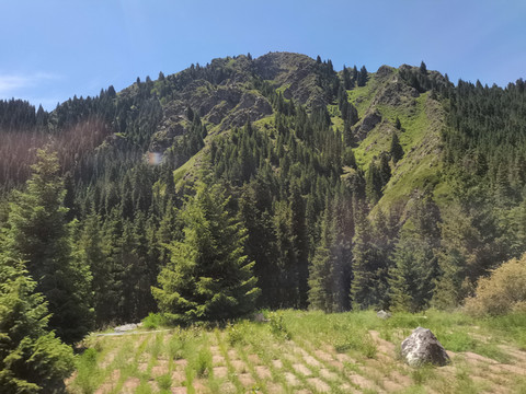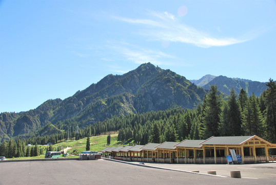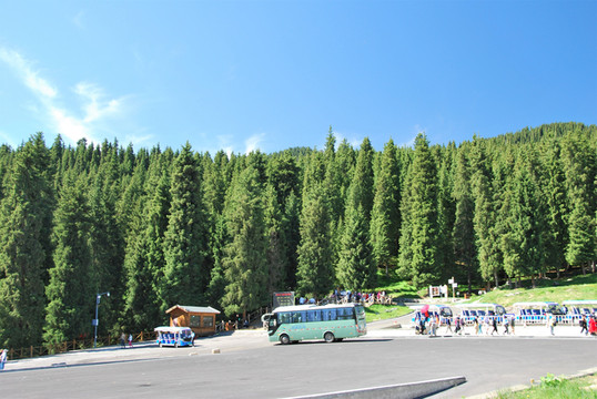 40多分钟后,景区车到达终点站,碧绿浓密的森林,都是竖直挺拔的云杉。