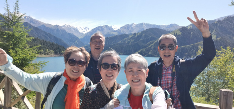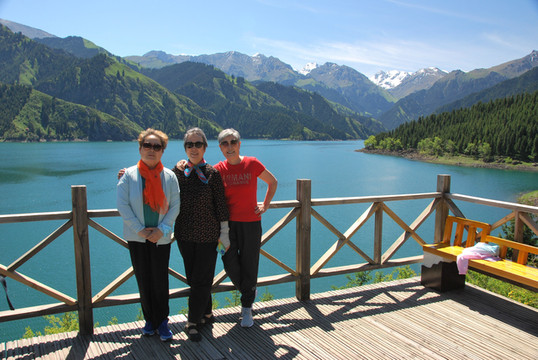 留下一张天池边的合影,一张被美景陶醉、喜笑颜开的合影。