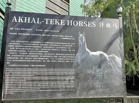 汗血马,传说中汉武帝的战马,学名阿哈尔捷金马,产于科佩特山脉和卡拉库姆沙漠间的阿哈尔盆地,是世界上最古老的马种之一。汗血马从古至今繁衍生息,从未断过血脉,在世界各地均有分布,以中亚地区俄罗斯、土库曼斯坦、哈萨克斯坦和乌兹别克斯坦等国居多,被土库曼斯坦尊为“国宝”。