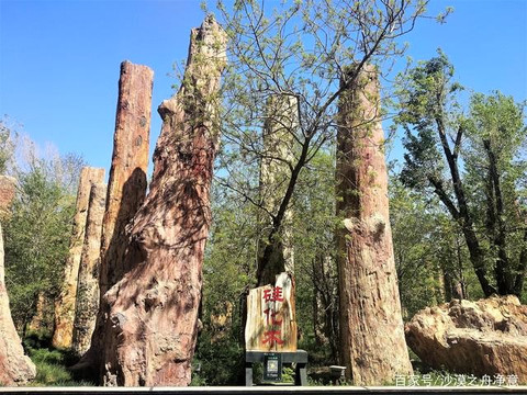古生态园内有近三百根硅化木,是世界最大的侏罗纪硅化木集中保护基地,其中有一根56米长的世界之最硅化木。