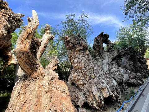 生态园内有一处胡杨枯木林区,保存了大量形态各异的胡杨枯木,把它坚忍不拔的胡杨精神广为传承。