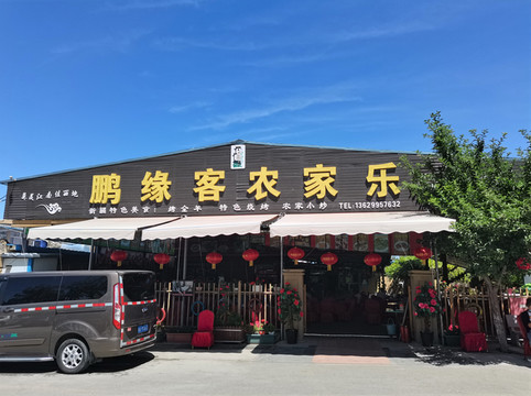 鹏缘客农家乐,餐馆面积挺大,布置的红红火火。