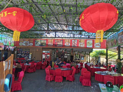 司机接上我们,已是下午14点多,说景区的饭贵而不好,带我们去一处吃饭的地方。大概行车十余分钟后,路旁有多家餐厅,在此停车。