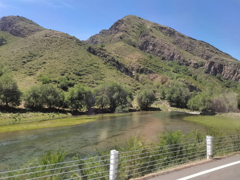 一路伴着一条河而行,时而湍急,时而平缓,山水相映,草木丰茂。