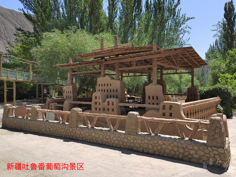 吐鲁番市葡萄沟风景区,是吐鲁番市境内一处沟谷(景区),因盛产葡萄而得名。当地维吾尔人称之为“布依鲁克”,意思是“长着又多又好葡萄的地方”。