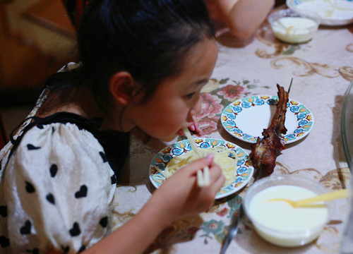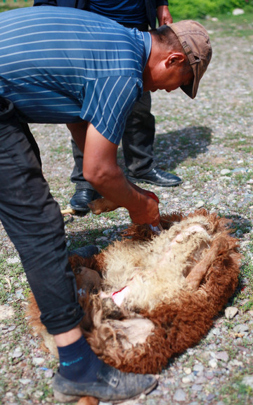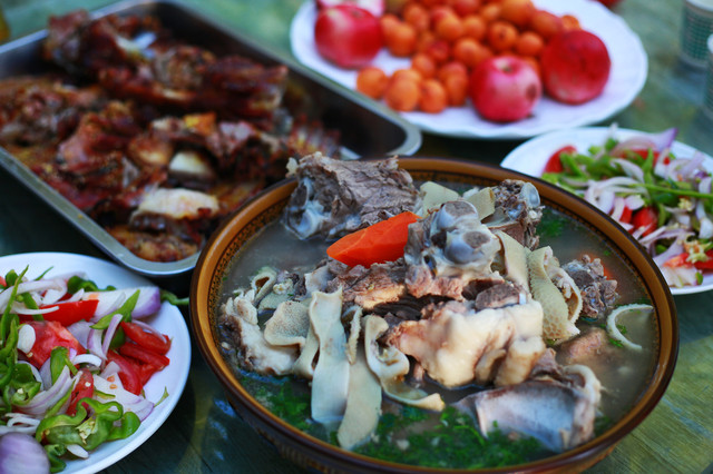 晚上就吃上白天买的羊,烤、炖、煮…在后山看一场那拉提的落日。