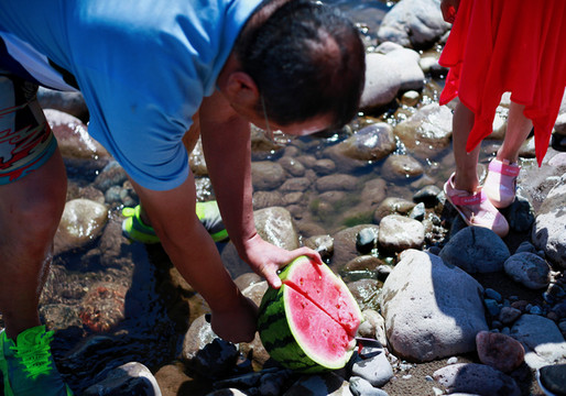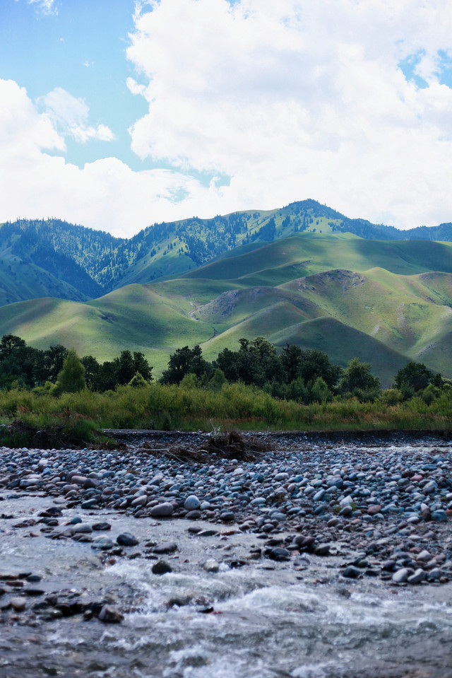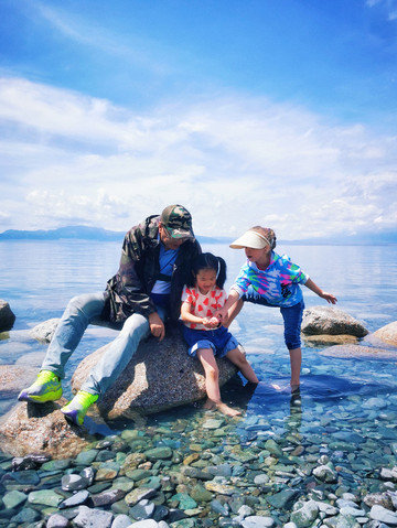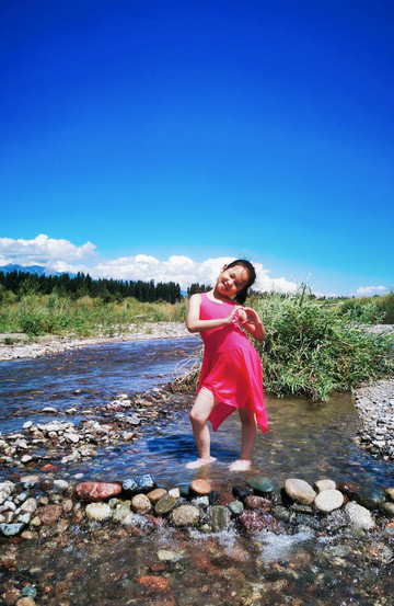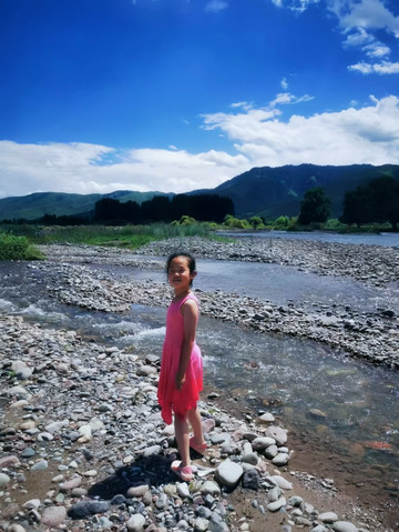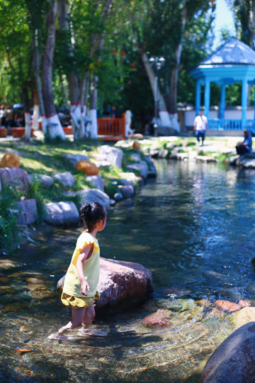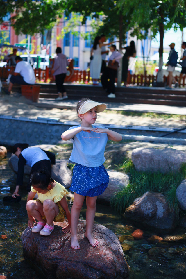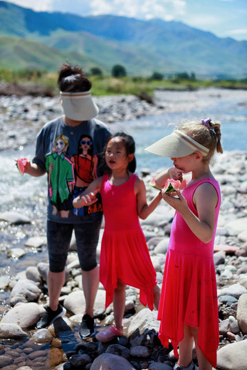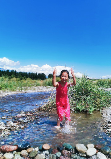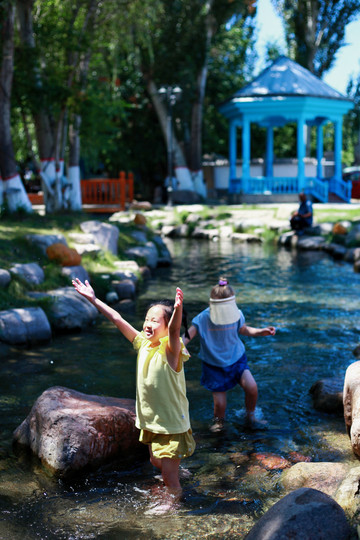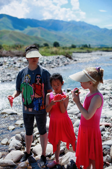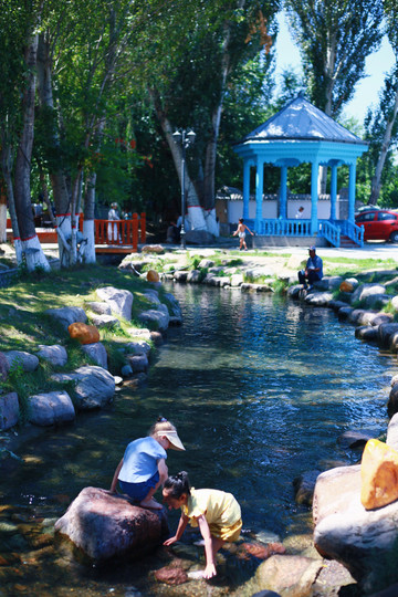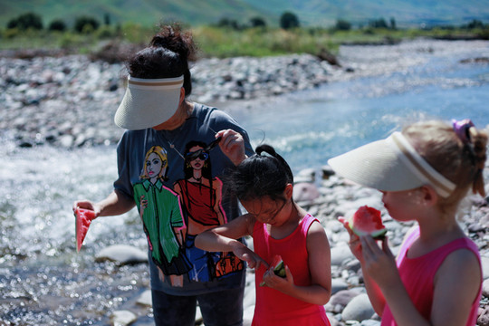 另辟蹊径,远离游人。在巩乃斯河里戏水、垒城堡、吃瓜…