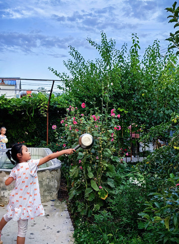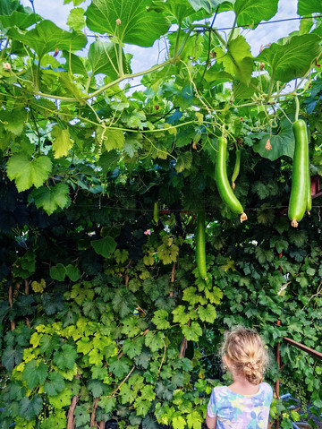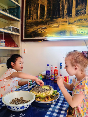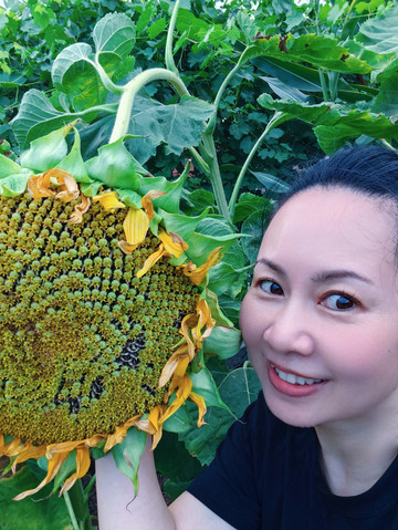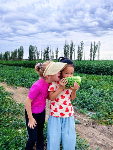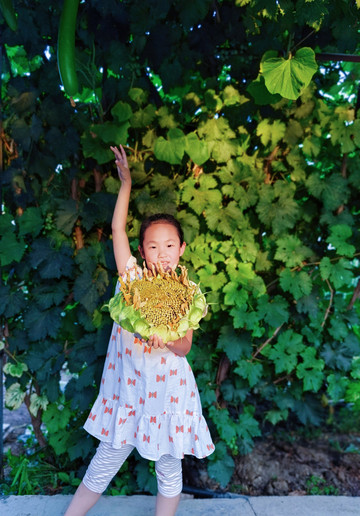 🦆外婆小院种满了蔬果,自摘了向日葵,玥和Desiree妹妹第一回体验向日葵里摘瓜子直接吃,直说好吃;