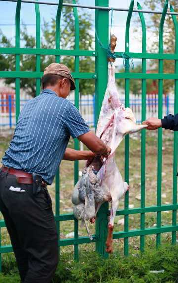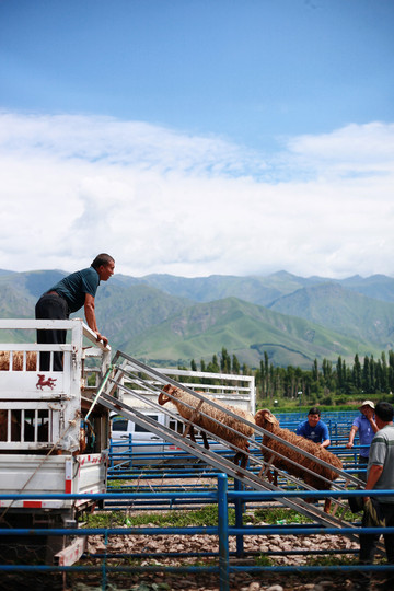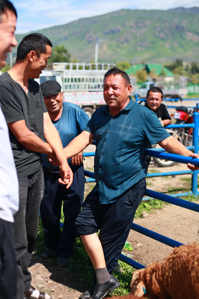 那拉提赶巴扎。巴扎上挑羊、砍价、现宰…