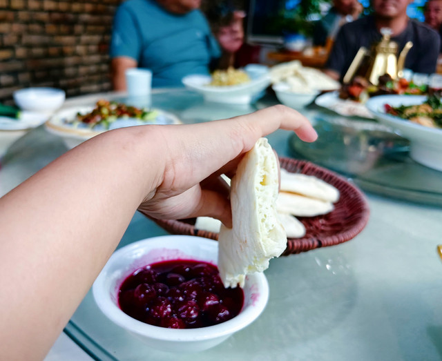 锡伯族大饼沾自制樱桃酱,是玥最爱!