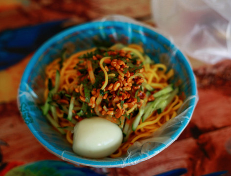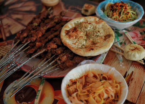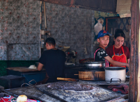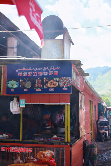 本地市场上吃个黄面、烤肉、烤包子。