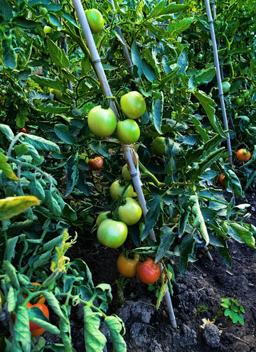 🦆外婆实现了瓜果蔬菜、鸡鸭鹅自由。食材都来自小院地里,玥想吃个番茄土豆丝,自己到地里摘了两个🍅,递给外婆;