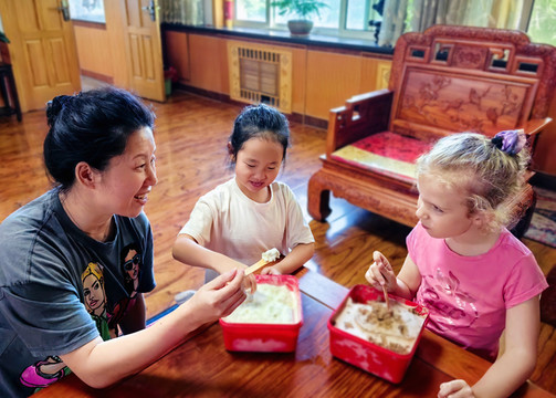 🍦在乌所有亲戚聚会,大大小小四世同堂30口,玥和Desiree妹妹是两位年长两岁双胞胎男孩的姨姨;