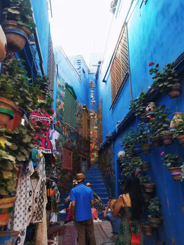 成片的蓝色房子、开满紫色槐花的小路、阳光下的长椅、围墙上的鸽群,又安静又舒服,开心到一路都在哼着歌。