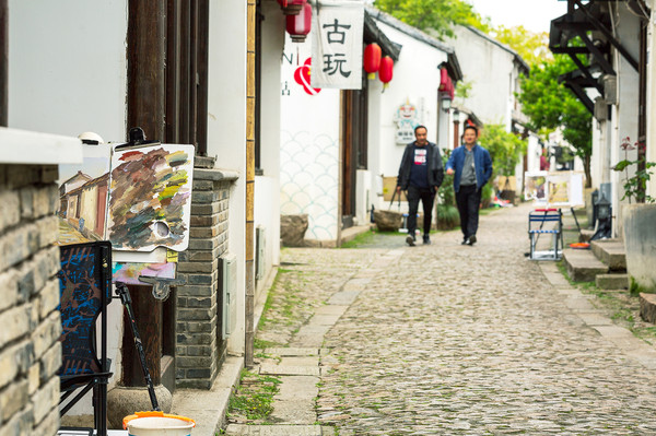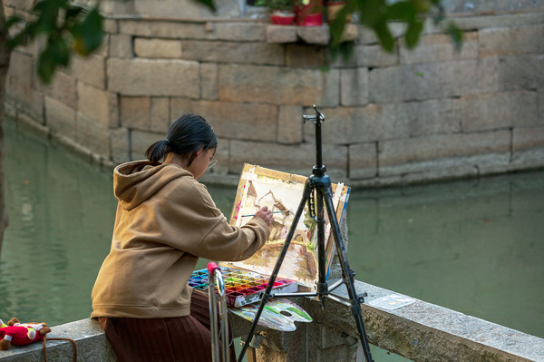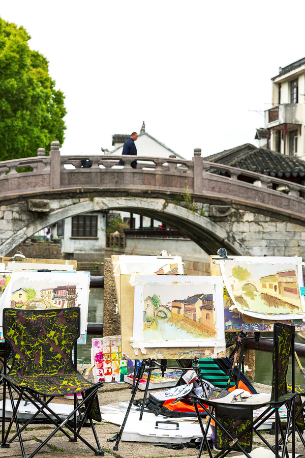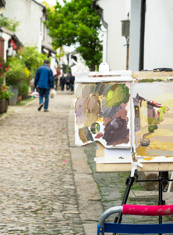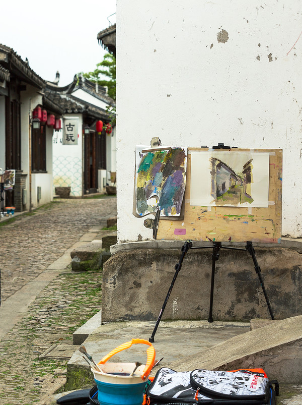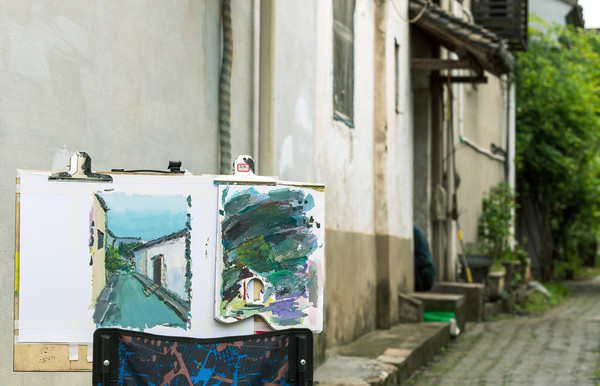 小巷处、石桥下、回廊间、河埠头,那些还没完成的油彩画,挂在画架上,主人却不知去了哪里。