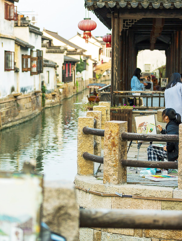 日常,甪直古镇的每个角落,都能见到来写生的孩子,他们来自全国各地不同的艺术院校。