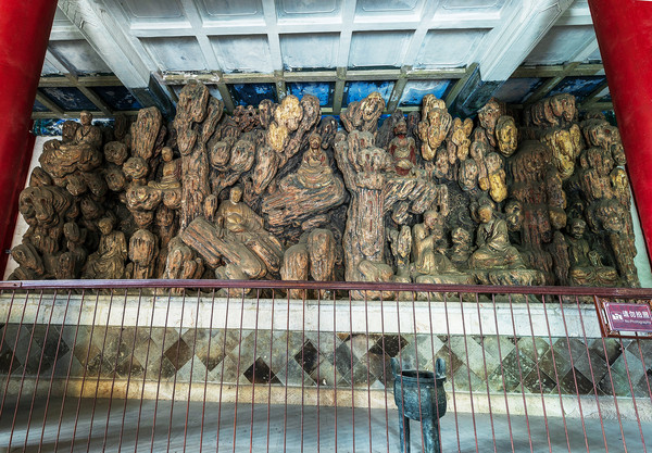 每一尊罗汉都根据各自的来历,或置身于海上仙岛,或隐于深山洞府,或四大皆空,或袒胸露腹,或秀目圆睁,或圆融智慧。而周侧耸立的山崖、舒卷的云团和翻腾的浪花,无不惟妙惟肖。