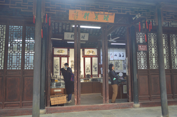 这里的鸿翼轩现在展出着画家周建鸿的字画。