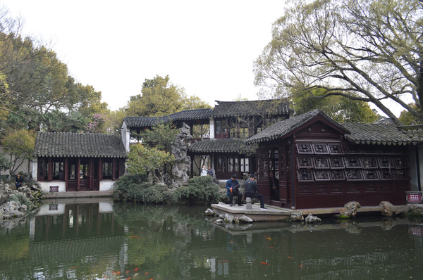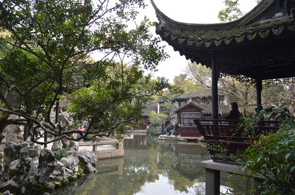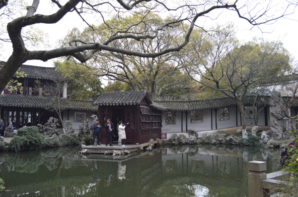 视野开阔的看向园中,水与建筑紧密贴合,整个园子象浮在水上,因为水的灵动给整个园林平添一分动感。
