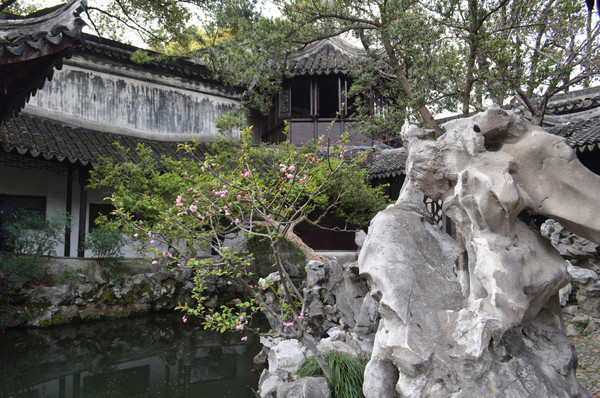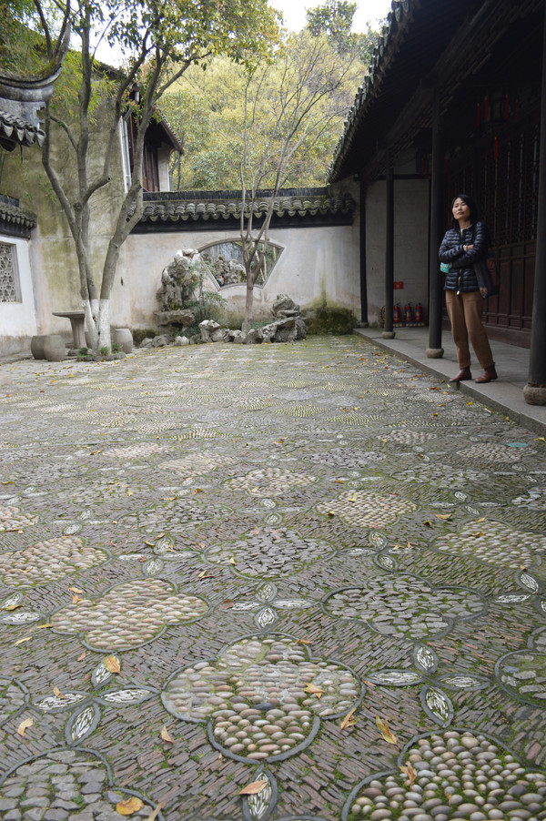 因园中遍植丛桂而得名,金秋时节,桂香满园的时刻一定是甜美入心田的。庭院内的小鹅卵石铺就的路面富有艺术的变化。