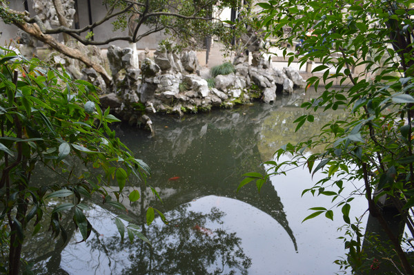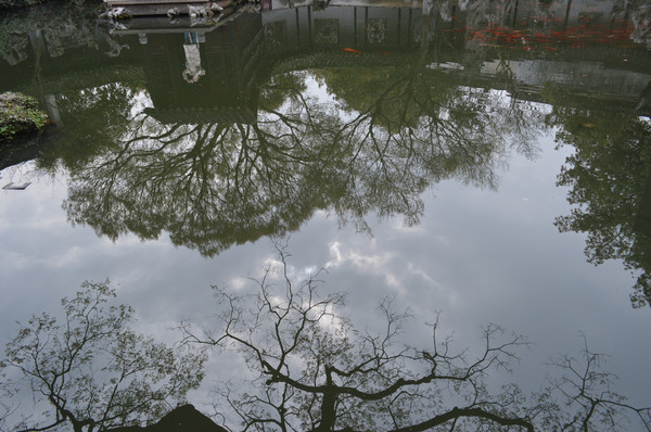 从回廊往向池水中,水质清澈,将所有的景物成镜像曾现,别有意境。