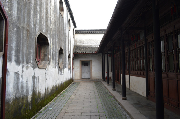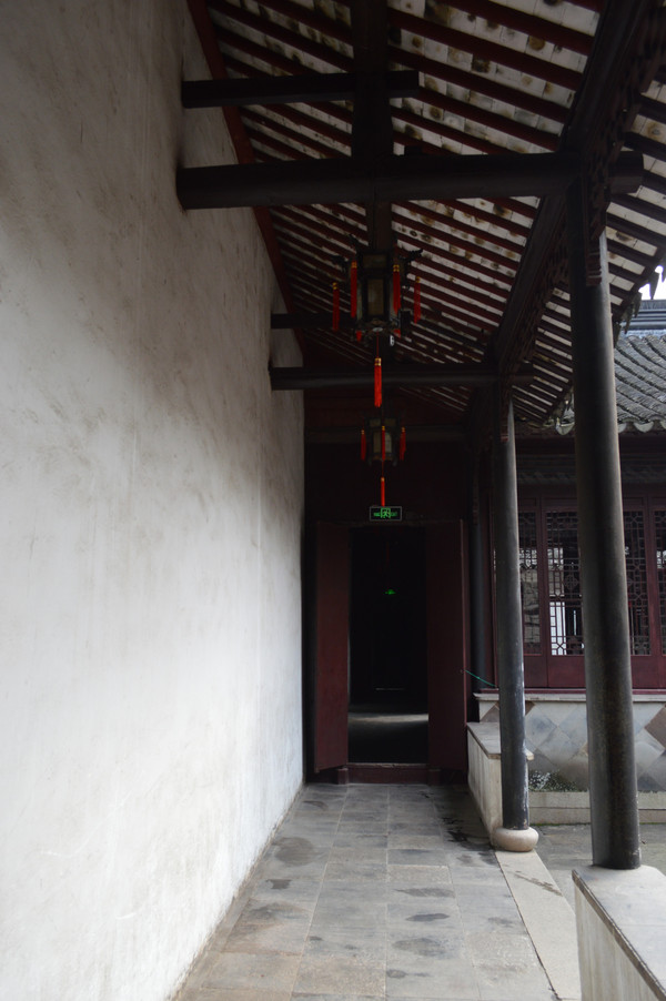 穿过门厅与茶厅之间的过道。退思园住宅分内外两部分。外宅三进——门厅、茶厅、正厅,沿轴线布置,等级分明。外宅主要用于会客、婚嫁盛事、祭祖典礼。