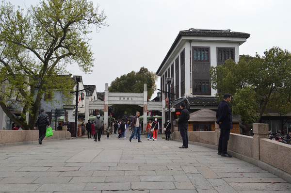 中川桥是同里镇的中川路直通古镇的桥梁。桥南边的牌坊就是古镇标志,进入那个牌坊就需要门票了。