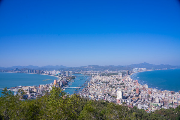 双月湾共分两湾,大亚湾和虹海湾,两湾相邻相背,象两个半月,故名双月湾。双月湾左湾水平如镜,右湾波涛汹涌,一左一右,有静有动,是一处不错的自然海景景观。站在观景台看到海湾全景,远处青山连绵,近处海湾宽阔,风景尽收眼底。十分壮丽。傍晚还可以欣赏日出日落。