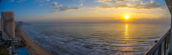 最后一天的住宿选在位于双月湾的享海酒店,真正的无敌海景房,阳台外就是一望无际的大海,晚上听着海浪声入眠。为了看到海上的日出,起了一个大早,那时天还没有大亮,天空还是一片浅蓝,转眼间,天水相接的地方出现了一道红霞。整个天空绚丽多彩,美不胜收。