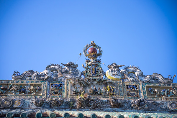 在湖畔伫立一座冲虚古观,掩映于苍松古柏之中,跨越千年仍静静地注视着世事变迁。其屋脊、内外博风、墙体均饰以大量的灰雕、陶塑、壁画,题材值得细细品味。