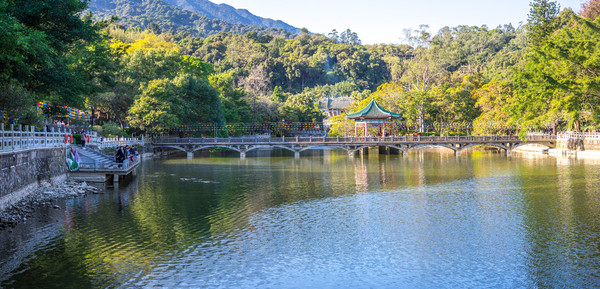 从五矿哈施塔特小镇乘坐大巴一个小时就来到了素有“岭南第一山”之称罗浮山。也是道教十大名山之一。走进罗浮山山门,眼前便是白莲湖,周围树木郁郁葱葱,跟北方的完全是不同的体验。