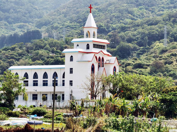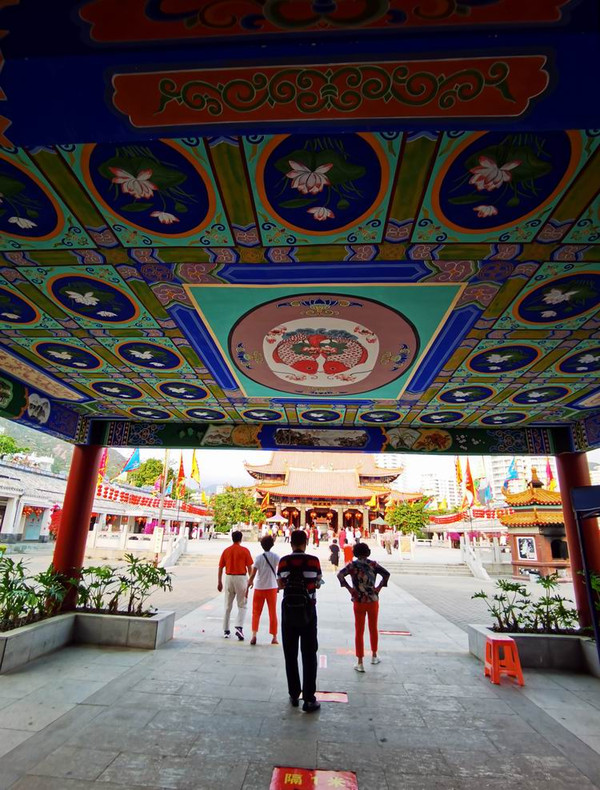 据说,巽寮湾天后宫是以原址不移动为前提,在原址上进行翻修重建同时在前方设置一个古戏台,中间为广场,保留和延伸原有天后宫的轴线关系,整体建筑群围绕天后宫核心建筑空间展开。图为在入口远眺天后宫广场。