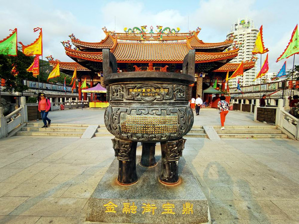 关于妈祖,内陆人不太熟悉,而她是倍受东南亚人敬仰,特别是我国沿海一带人民敬仰的民间女神。妈祖真名林默,又名“默娘”,出生于北宋福建湄洲的一个渔村。相传她八岁就能诵经,16岁就能下海,经常奋不顾身在海上抢救遇难的渔船和商船。图为天后宫的宝鼎。