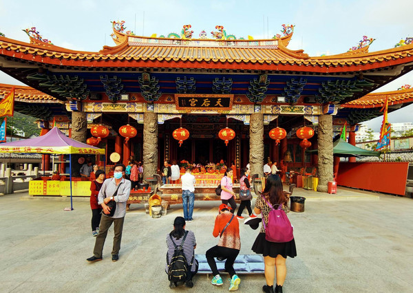 天后宫四周绿树婆娑,殿中香烟袅袅,置身其间令人顿生超凡脱俗的感觉。据说这里的妈祖庙是珠三角最大、也是最华丽的天后宫,雕梁画栋、戏阁巍峨、美仑美奂。