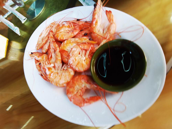 天后宫商业街还有很多岭南美食餐厅。当天晚上,我们在这家海鲜排挡吃饭。这是白灼虾。