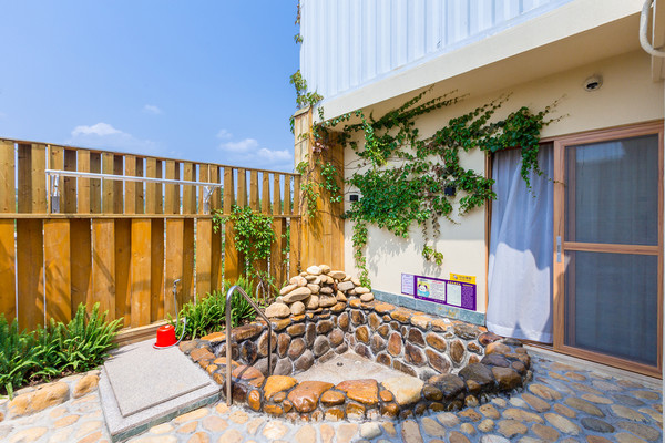 庭院有私密温泉,不用去公共温泉池跟人挤,而且想什么时候泡就什么时候泡,非常方便。