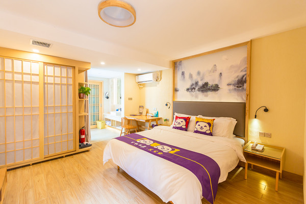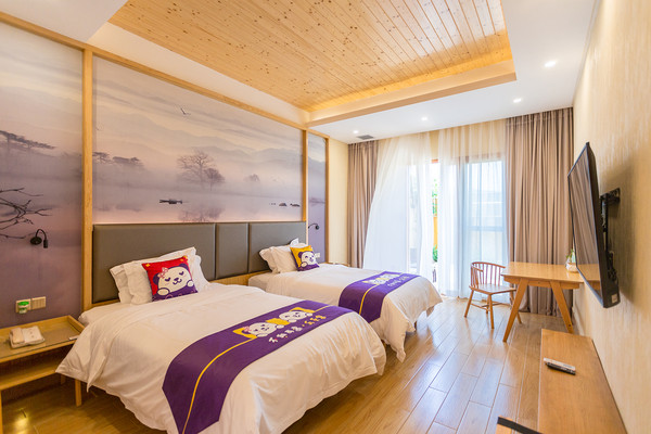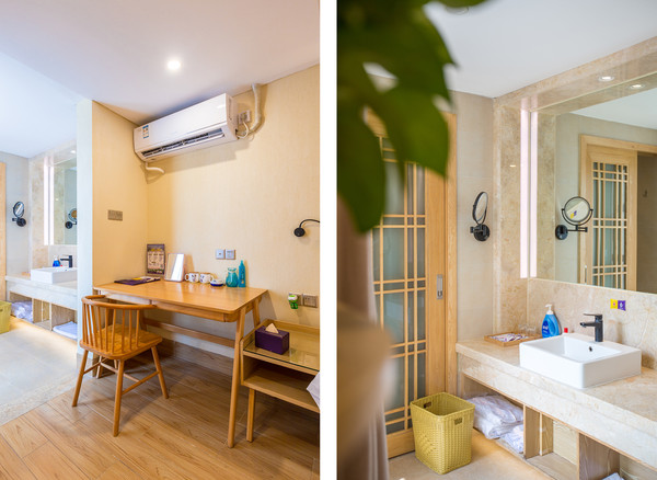 我们在顺逸东方白盆湖温泉度假村预订了星空别墅套房,它有3房1庭院------1间1.8米大床房,1间1.35米双床房,2楼是至少能住3人的榻榻米,各有独立卫浴,一家人入住绰绰有余。