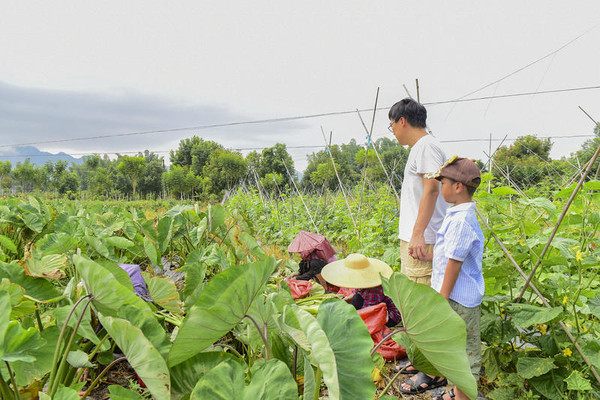 若不是拔芋头和生姜需要大力气,恐怕娃还想亲自挖芋头和生姜呢。