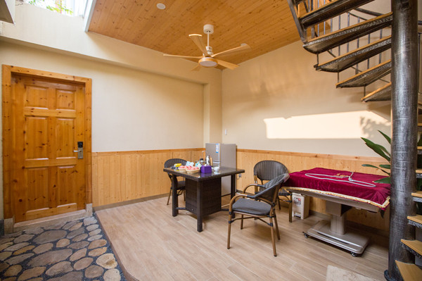 我们的星空别墅套房入户厅还配有茶室,晚上一家人可在此品茗聊天。