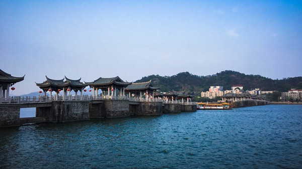 位于 潮州 市古城东门外,横跨韩江,联结东西两岸,集梁桥、浮桥、拱桥于一体,是 潮州 八景之一,是 潮汕 地区著名文物旅游胜地, 中国 四大古桥之一,国家AAAA级景区,被桥梁专家茅以升誉为“世界上最早的启闭式桥梁”。最特色的是中间是用浮船连接的,晚上5点后,船就拆开,通航。
