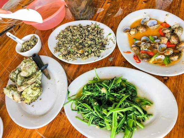 于是在隔壁左手边这家吃的,就点评上叫了个套餐,多点了份生蚝,一共210元,口味一般般,花蛤里还有死的没开口