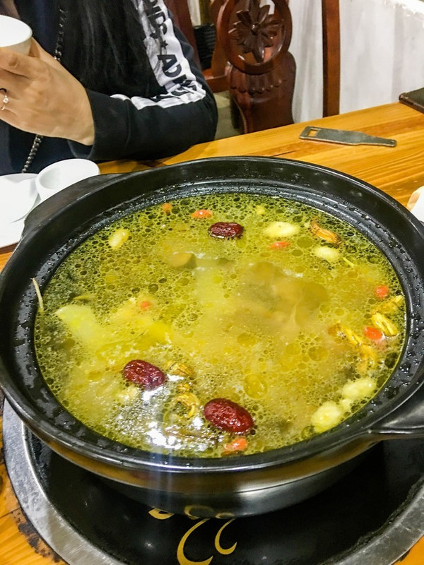 连着吃了2天海鲜,晚上换了一下,吃了阿芳石锅鸡,也是点评上找的,口味还不错,130.8的套餐,三个人刚刚好~~