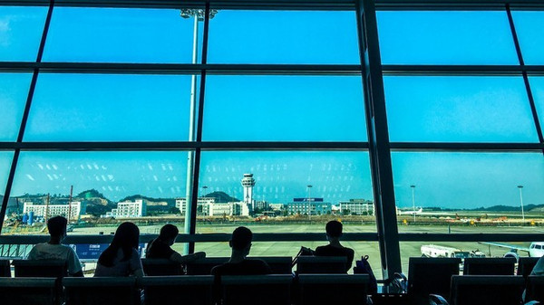 到了 揭阳 机场后,就测了一下体温,我们就出来了!