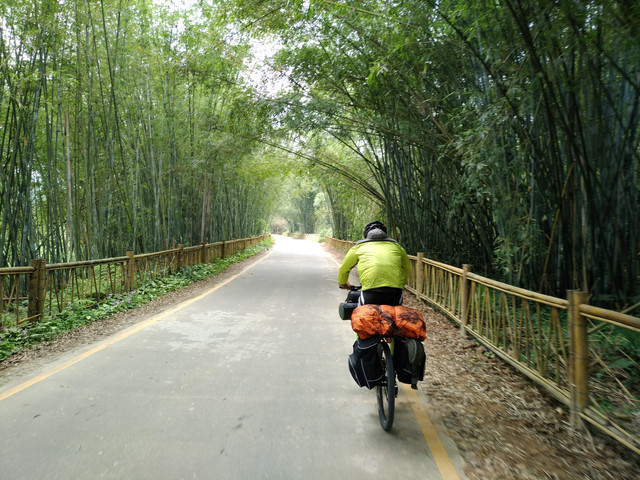 中午迎着雨改走321国道,一路都有骑行道,路况很好。