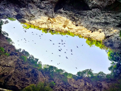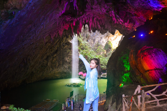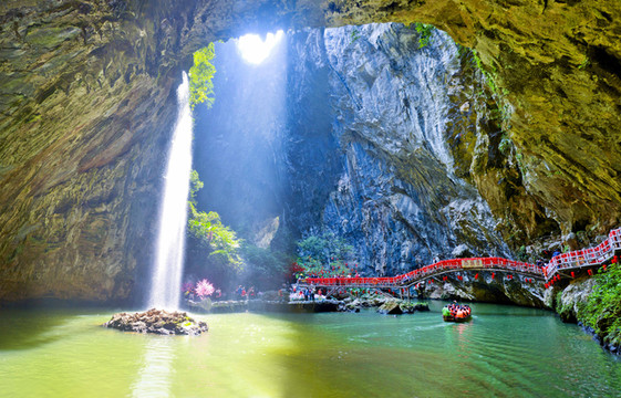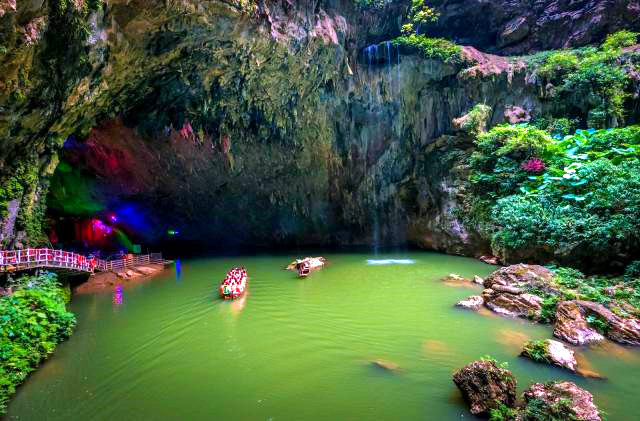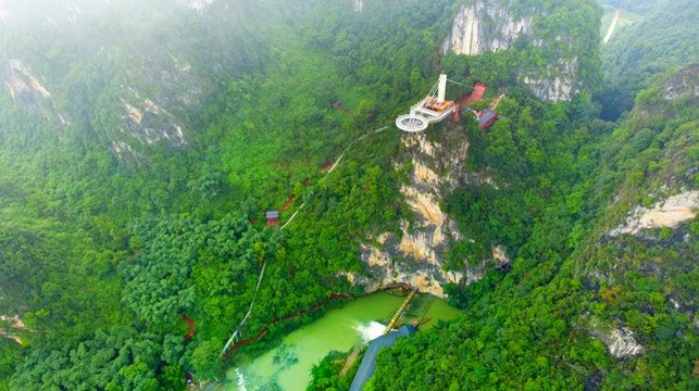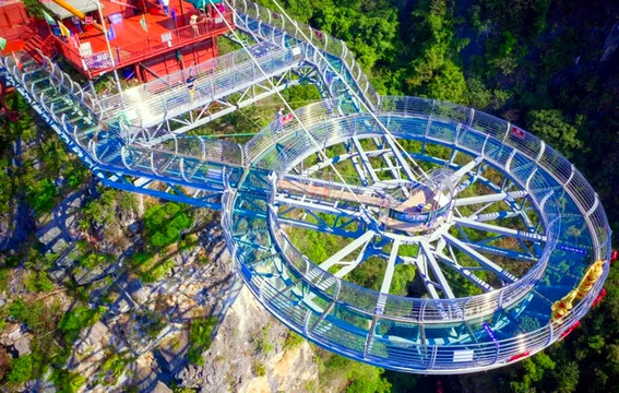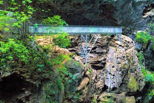 线路推荐:天坑泛舟→观光魔毯→穿天悬空木栈道→华南第一天坑→仙境天瀑→溶洞悬空铁索栈道→洞天飞翔→九龙之星玻璃观景台→玻璃滑道→翠竹林(民俗文化街)