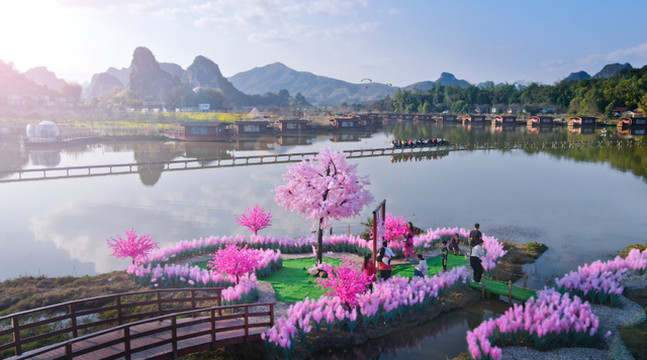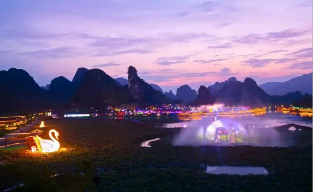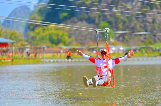游玩线路推荐:飞龙桥→峰林观光小火车→党建教育基地→峰林·军事体验乐园→婚纱摄影基地→滑翔伞·热气球→小勇士攀岩→情缘谷飞天→峰林茶舫·峰林第一舟→溶洞科幻馆→峰林飞翔→水幕电影灯光秀
