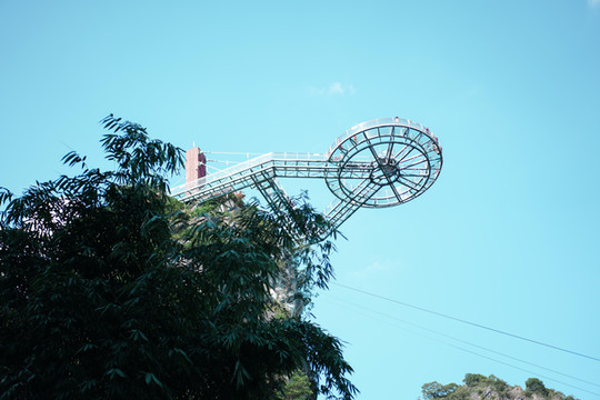 你知道吗!去往玻璃桥,只需要走一段步道,剩下的路程可以坐电梯!第一次体验上山游玩可以坐电梯,对于我这种体力不支的人来说,实在是太棒了!半山腰的步道到玻璃桥之间有长338米的户外扶梯,爬到了半山腰,只需要乘坐电梯就可以轻松登顶了,整个过程也就几分钟,太方便了。